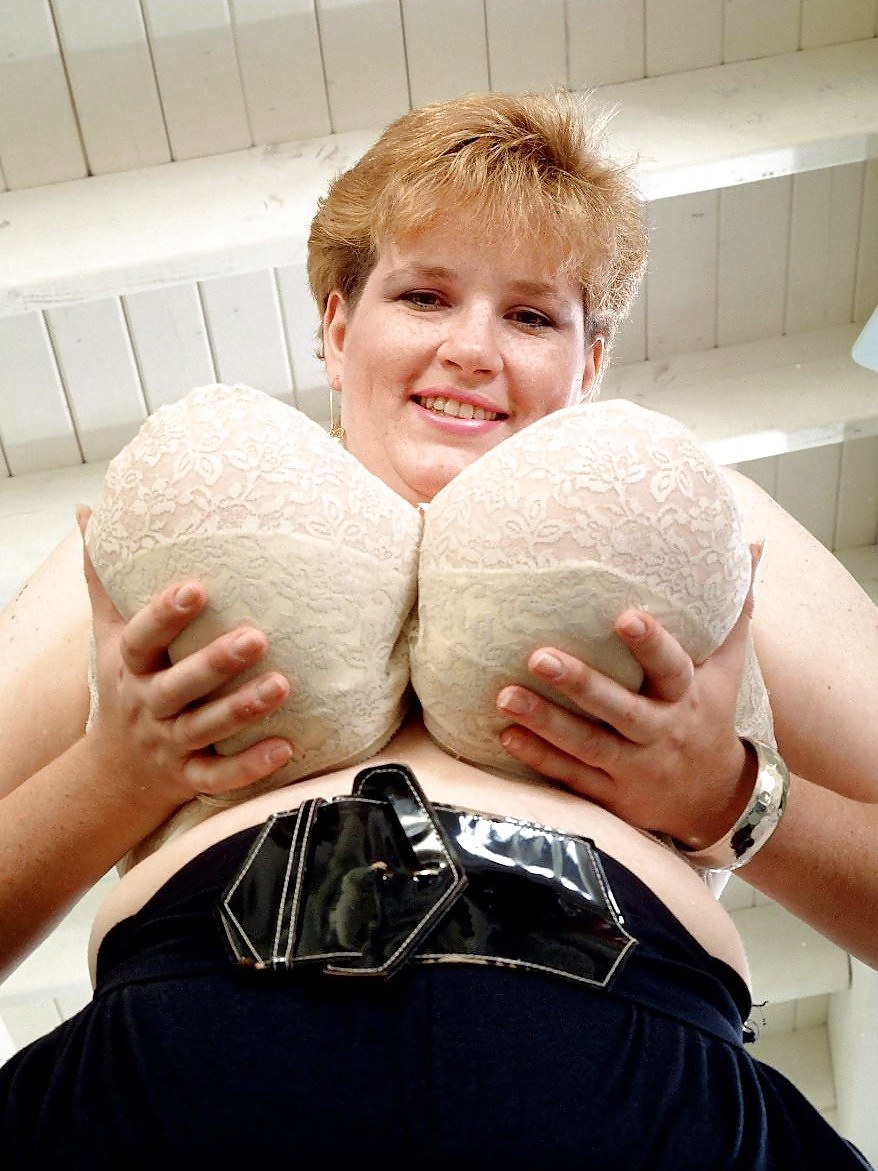 Huge tits of old women in a bra