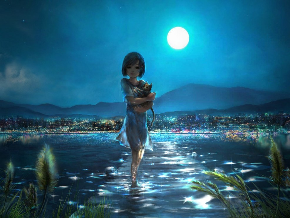 Night Moon Girl Art Art