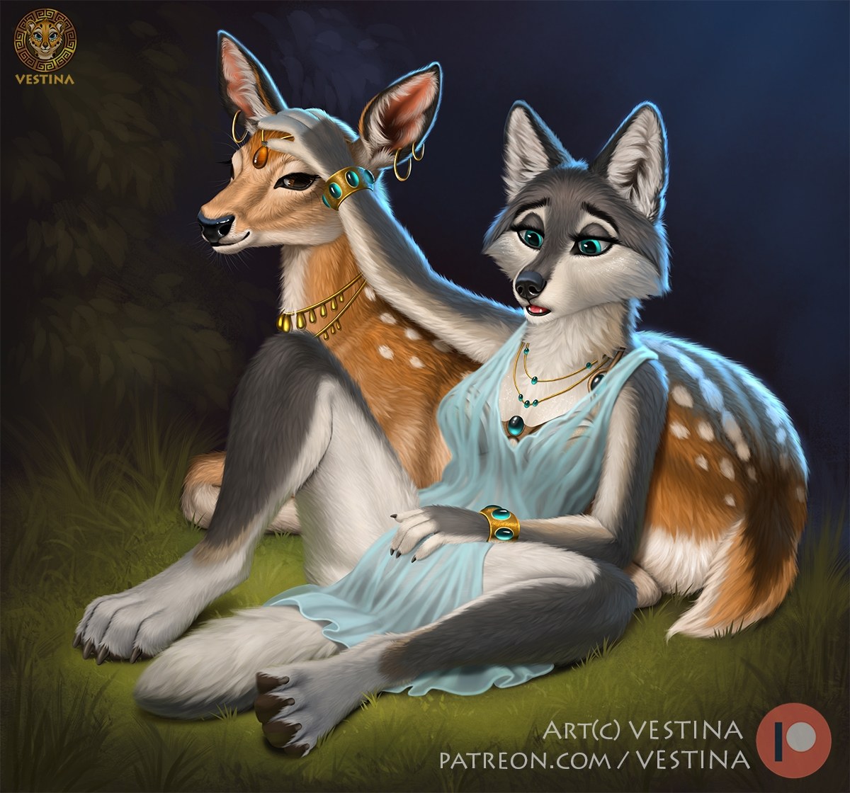 Furry deer and wolf
