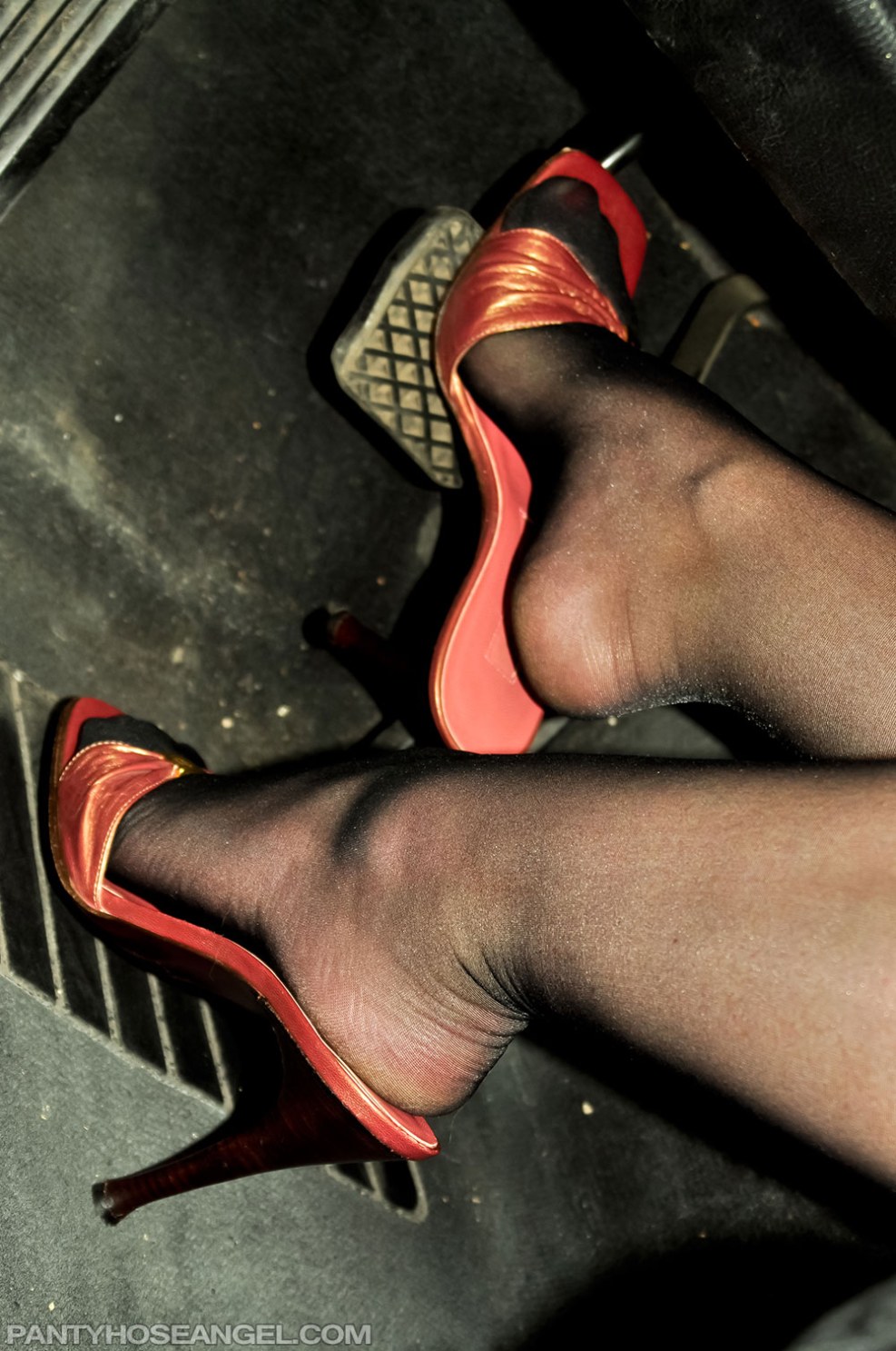 Footfitish tights in the car