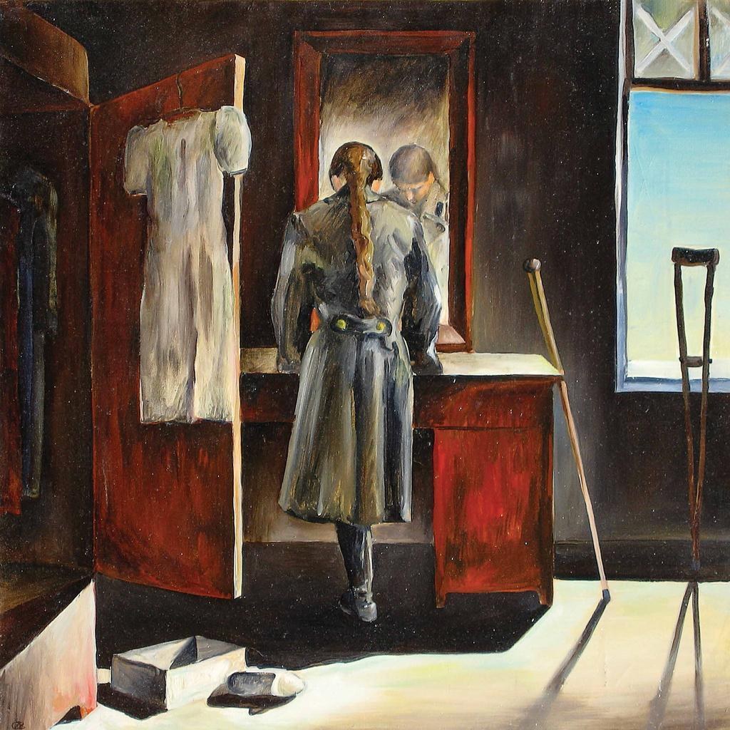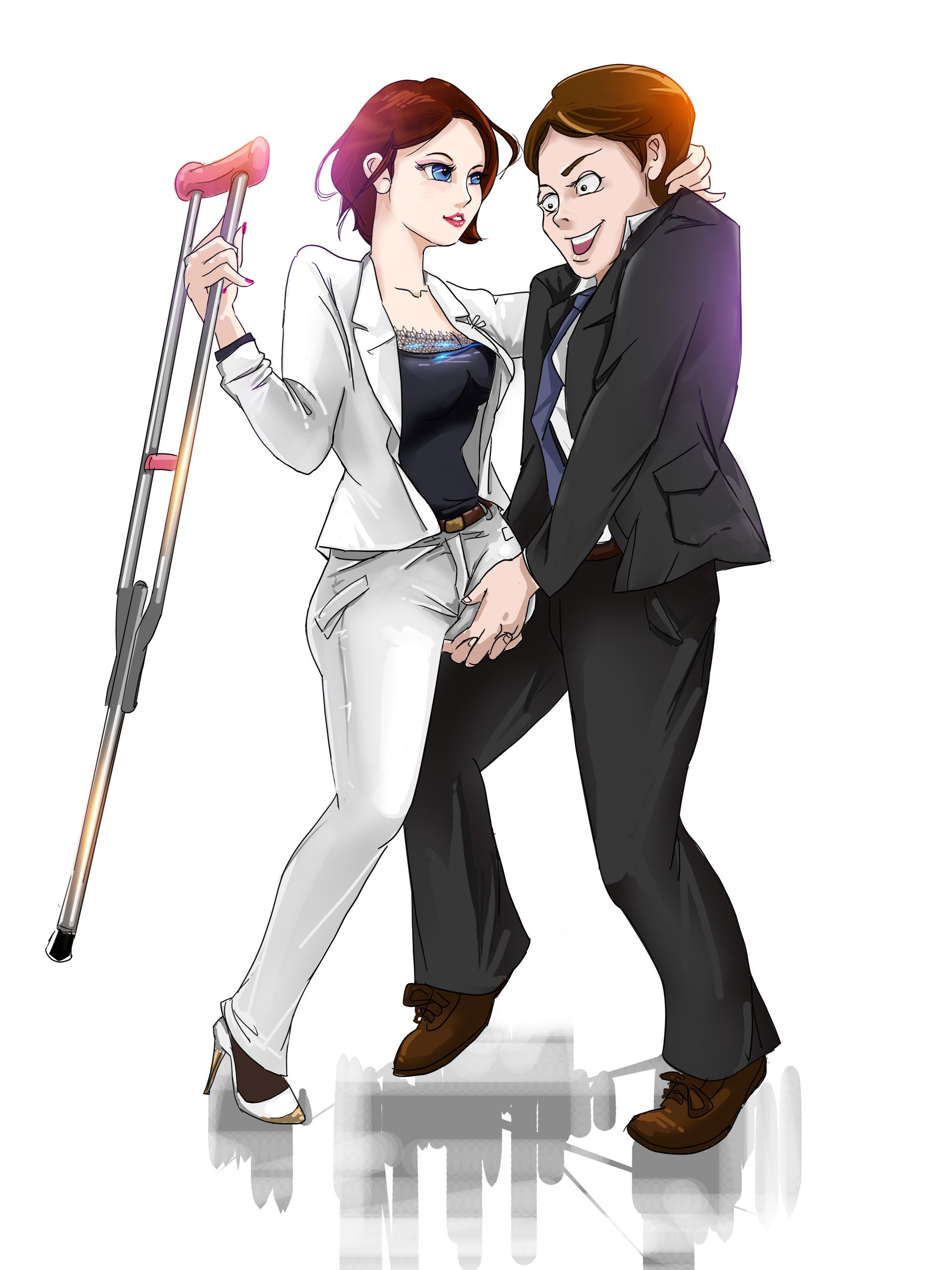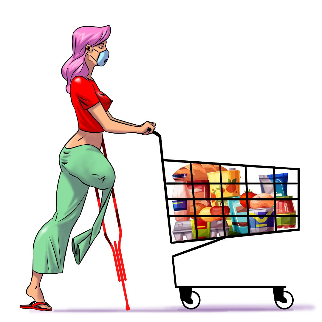 Amputi on crutches drawings