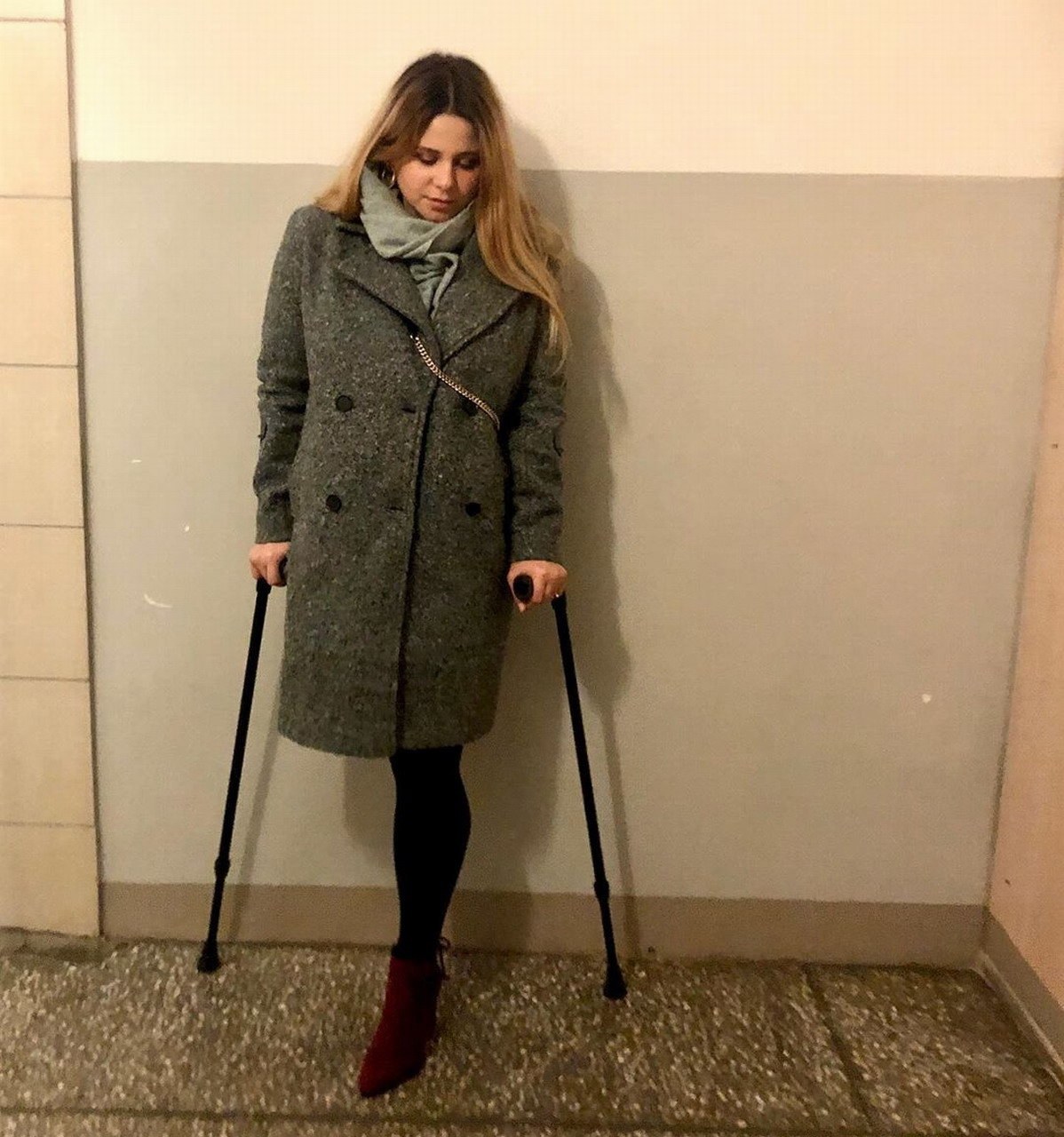 Amputi on crutches in the hospital