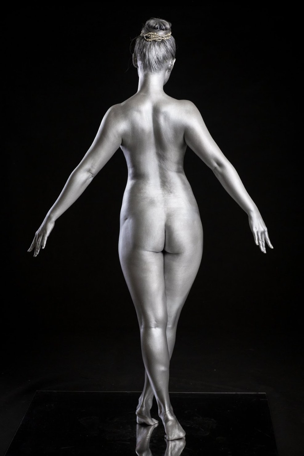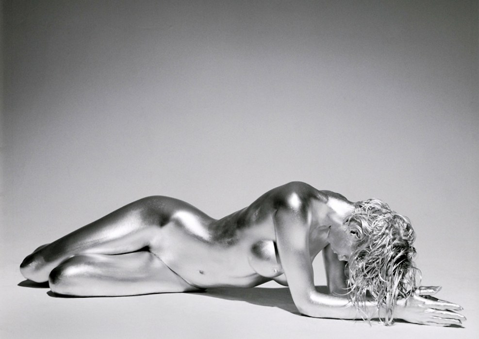 Naked in silver paint