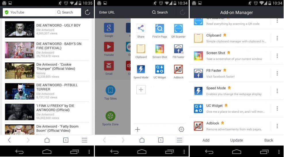 Screenshots with UC Browser all versions for android