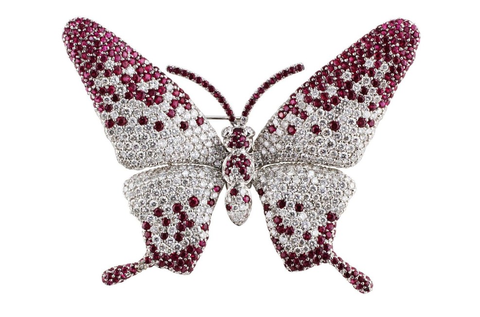 A butterfly of precious stones on a white background