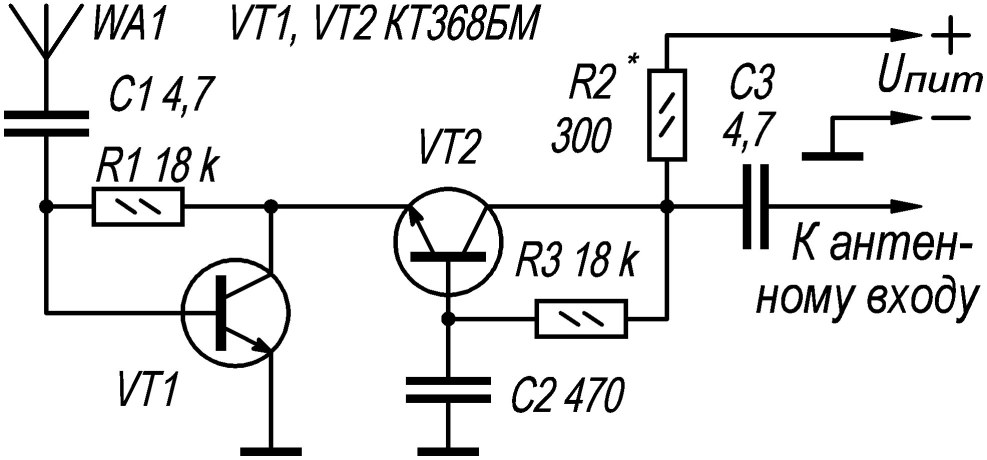 UNF amplifier scheme on transistors GT404 GT402