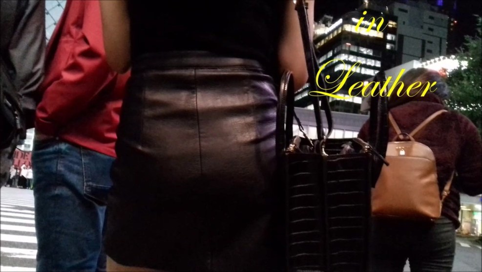 Cum on Woman in Public Leather Skirt Voyeur