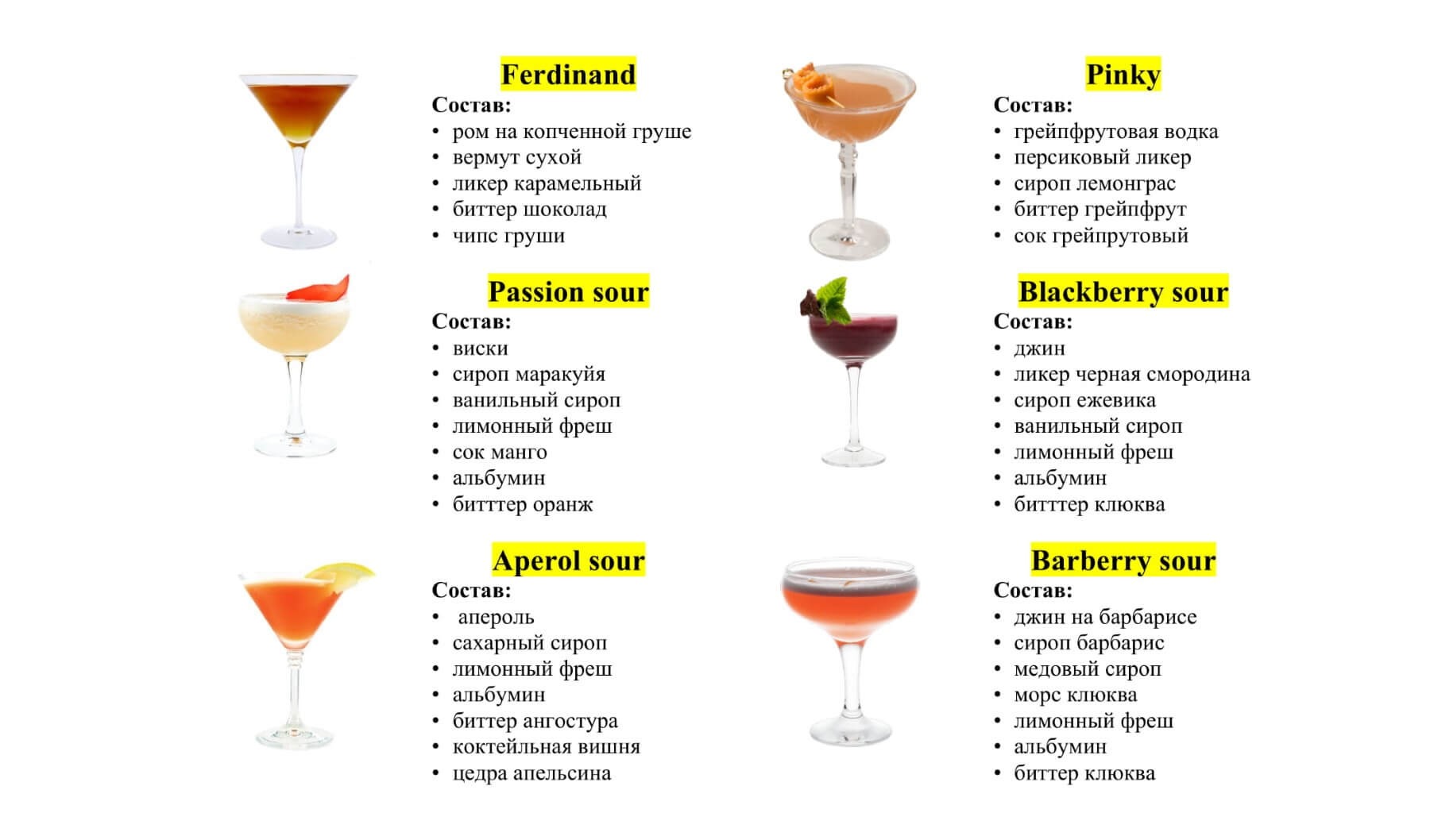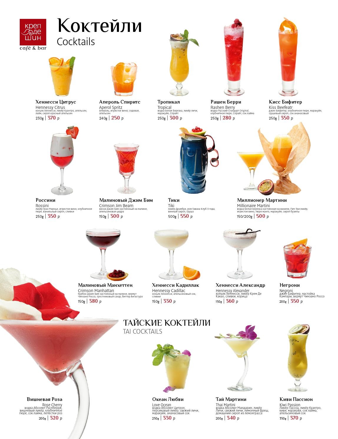 Proportions of alcoholic cocktails