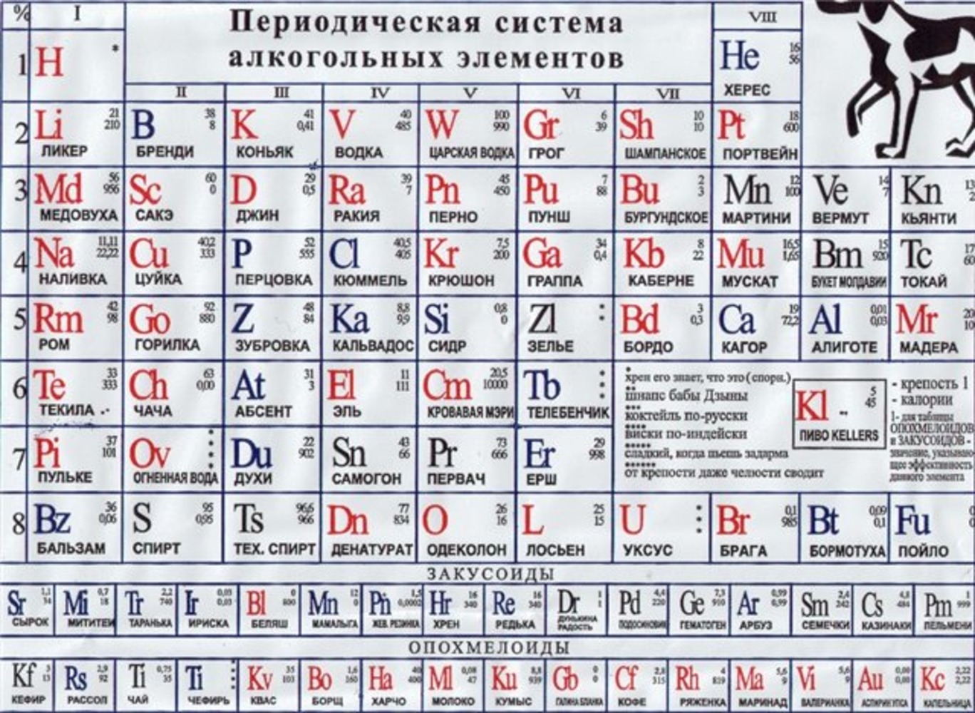 Periodic system of alcoholic elements of Mendeleev