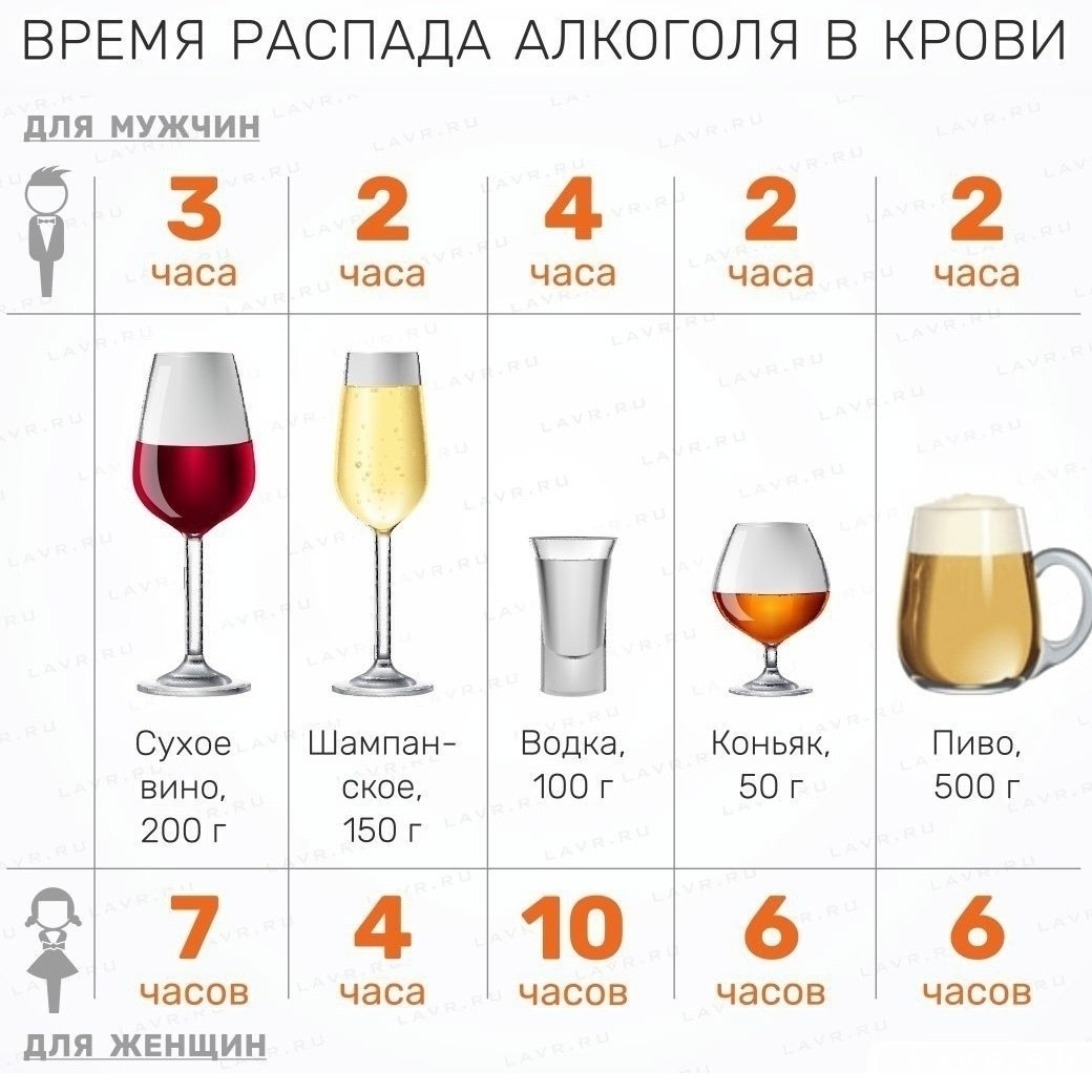 Alcohol decay table in human blood