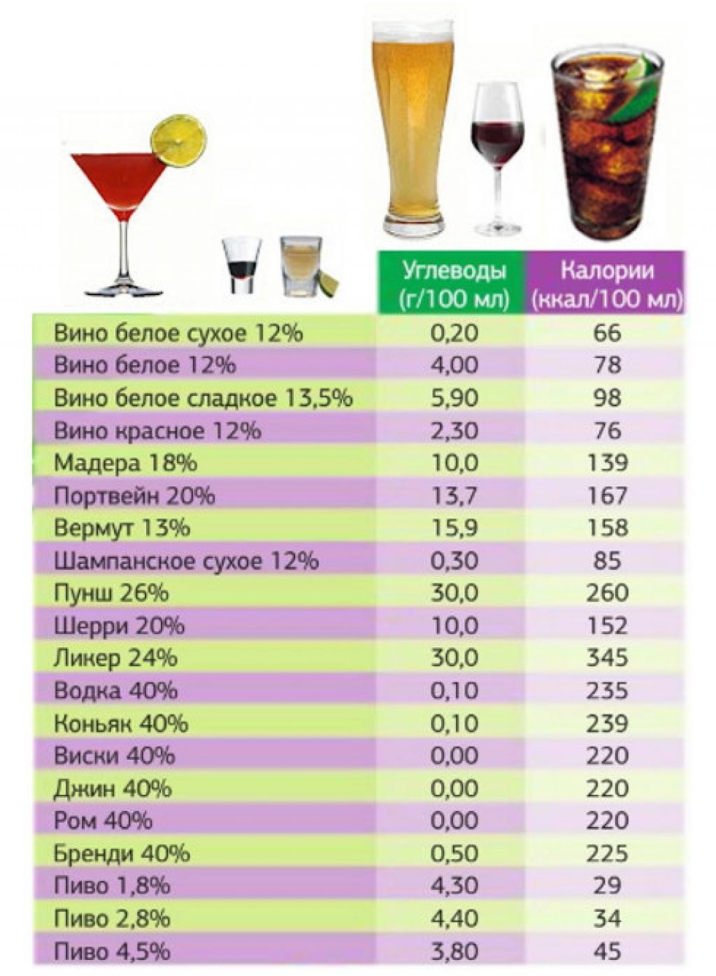 Calories in alcoholic beverages table