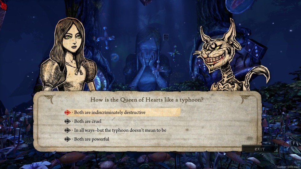 Riddles from Alice in the country of nightmares