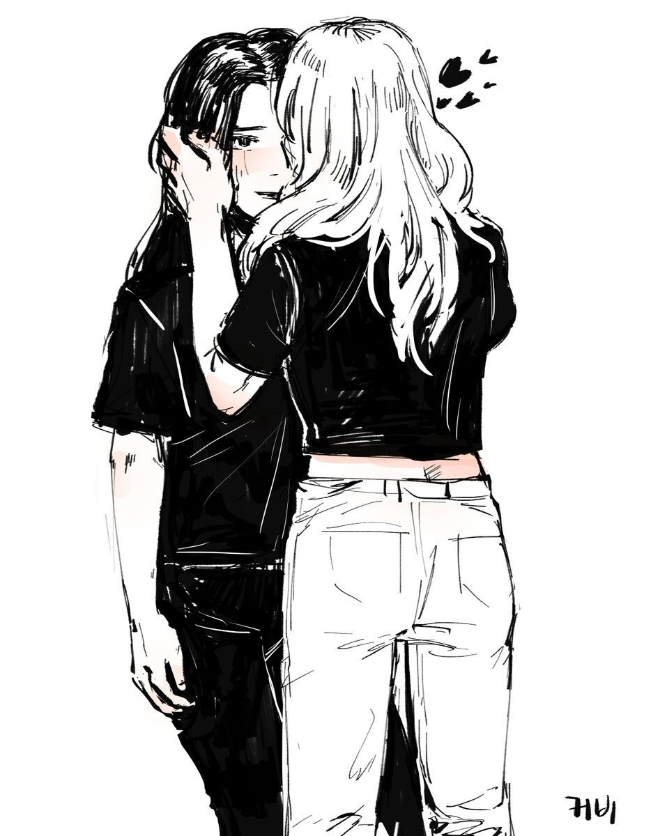 Anime kiss black white