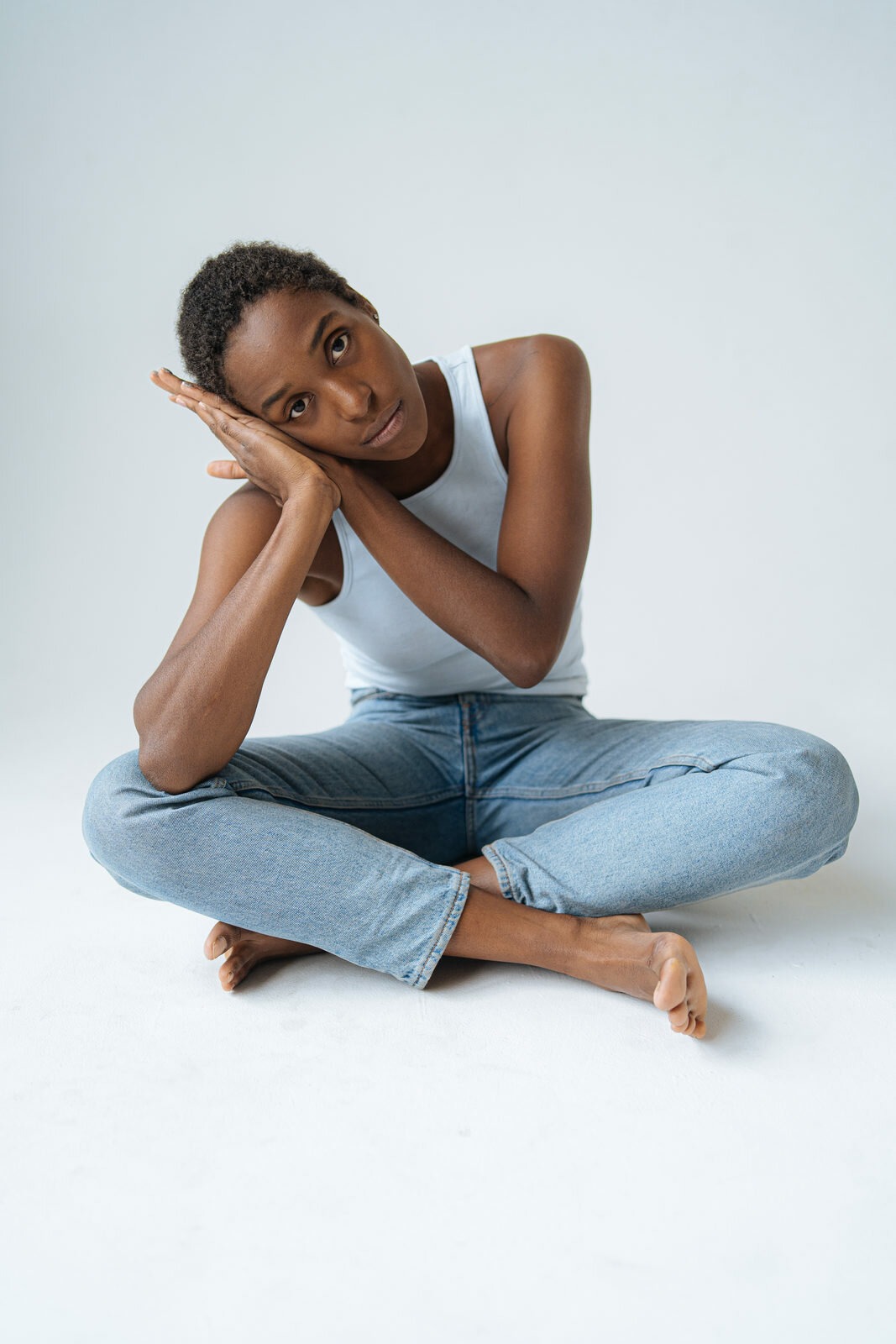 Beautiful woman on the rug naked
