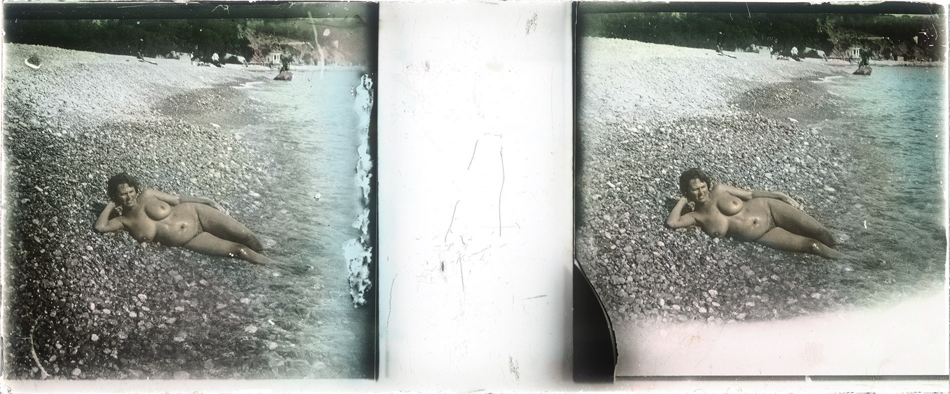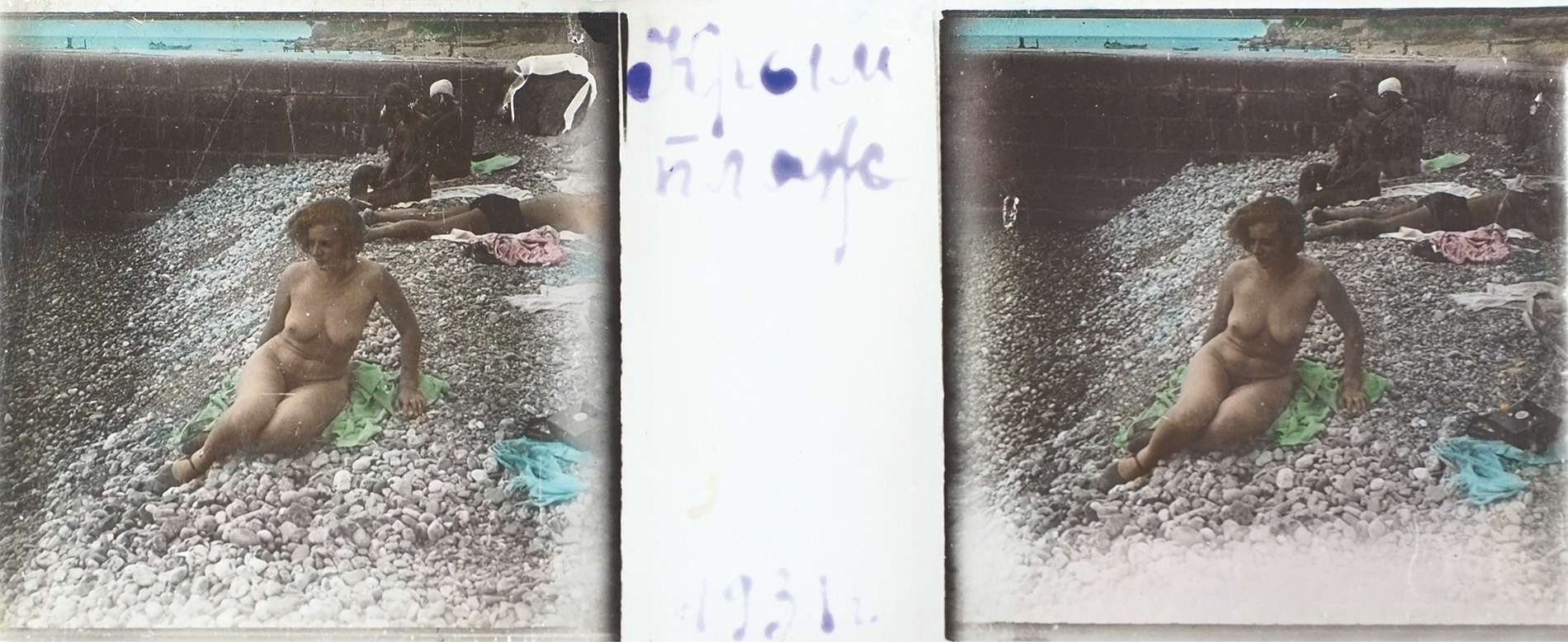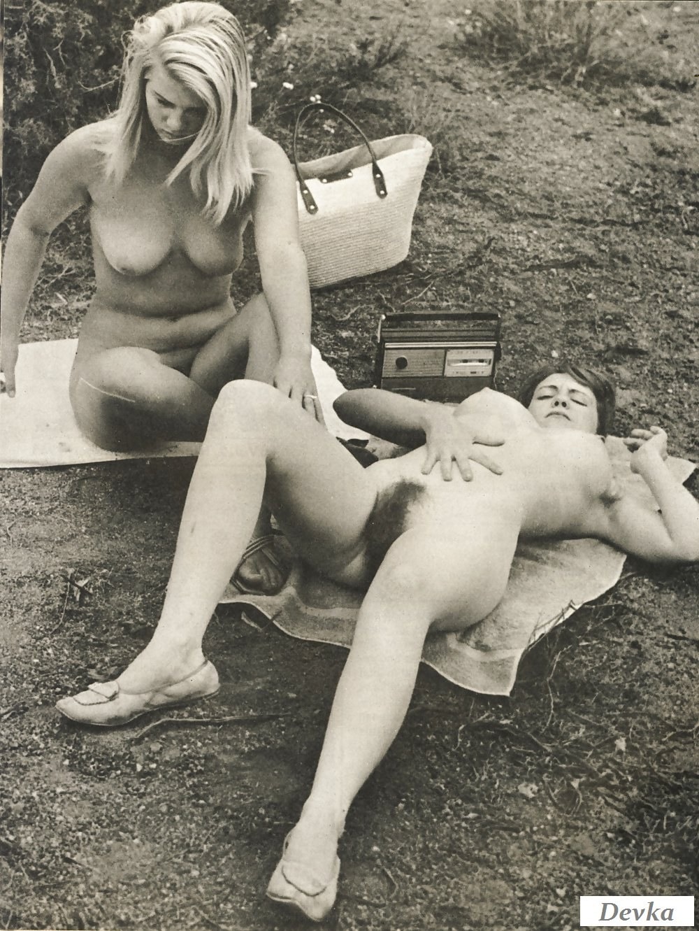 Naked women on the beach retro