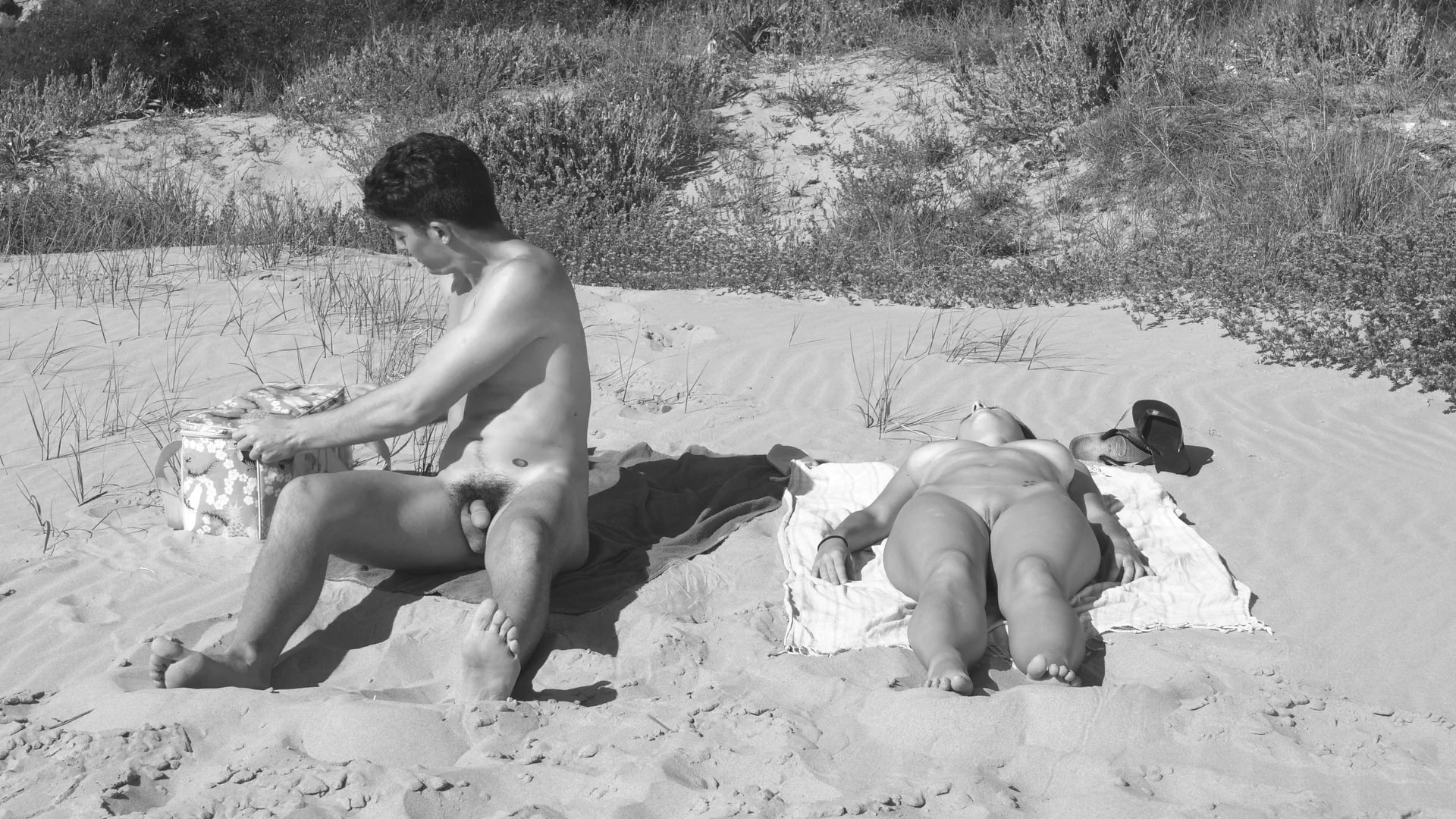 Public cunnilingus on the beach