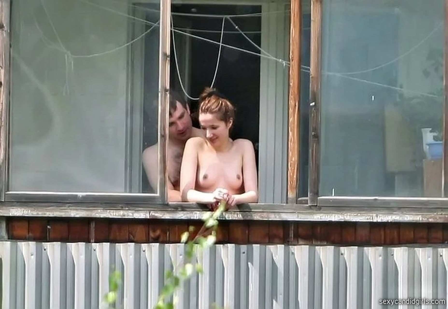 Naked on the balcony spied