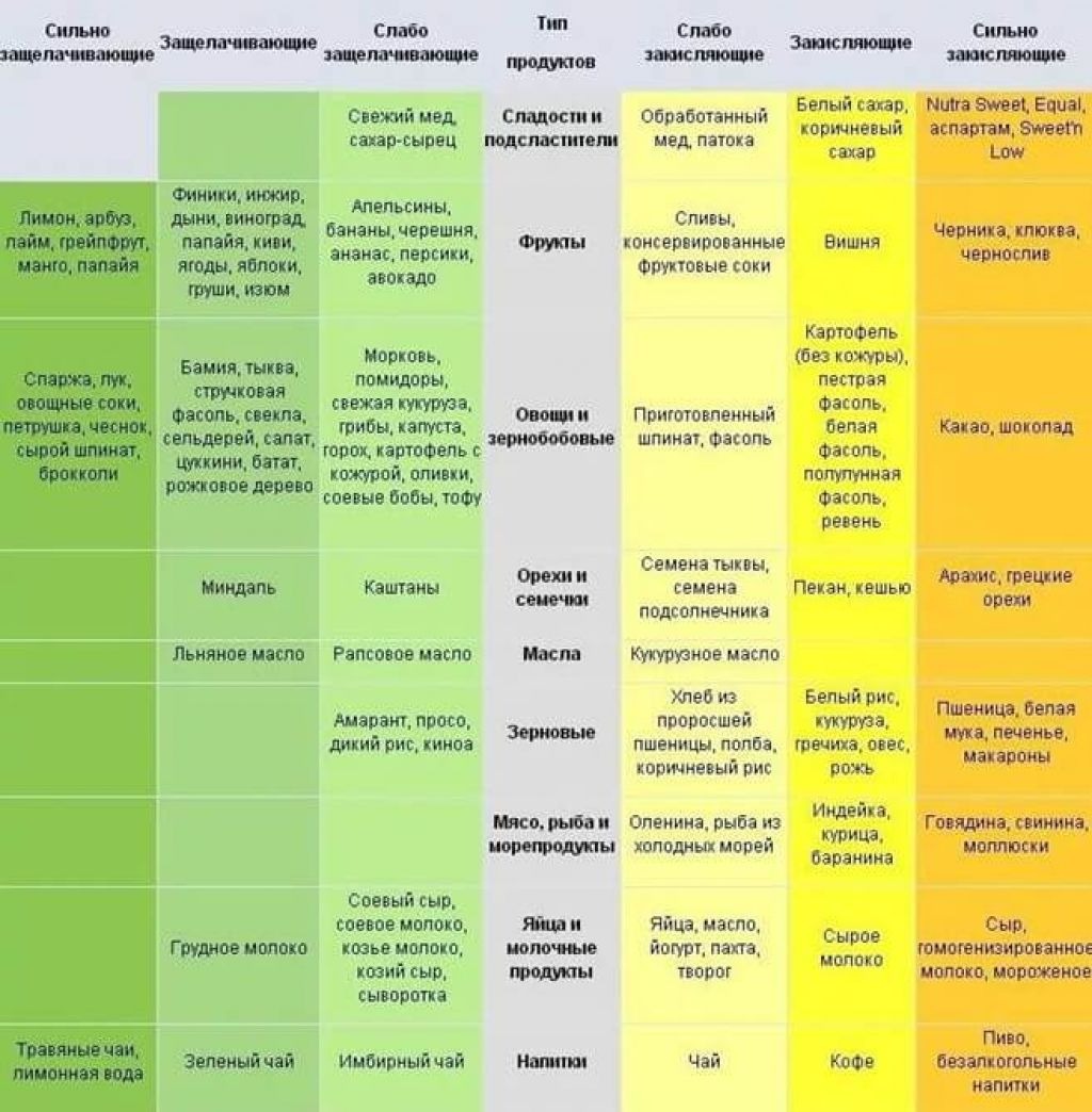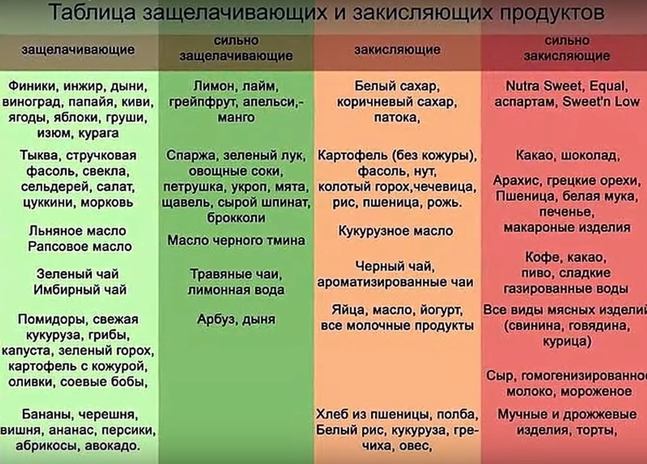 Products of acidifying and alkalizing the body table