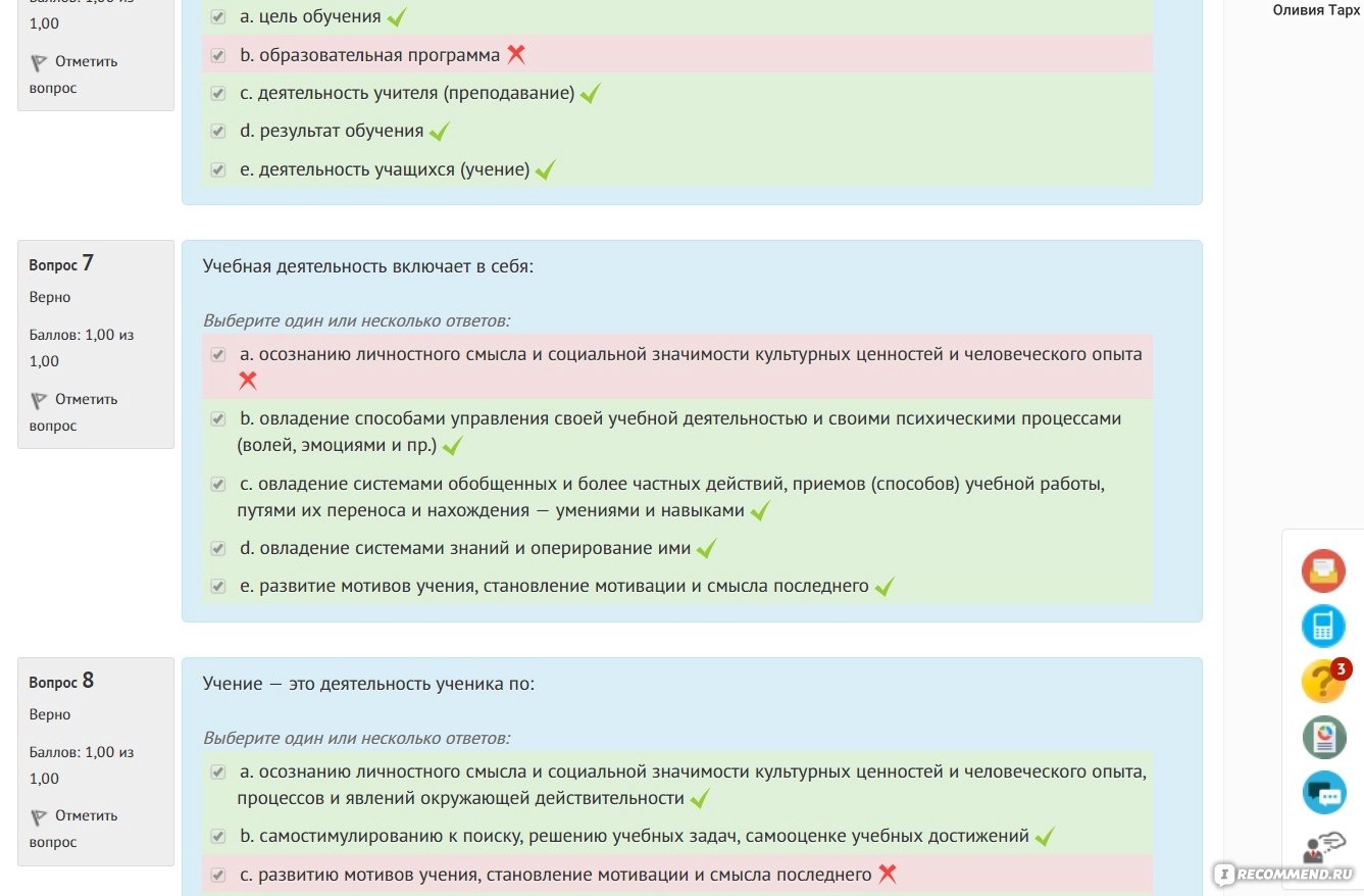 Questions for testing with answers