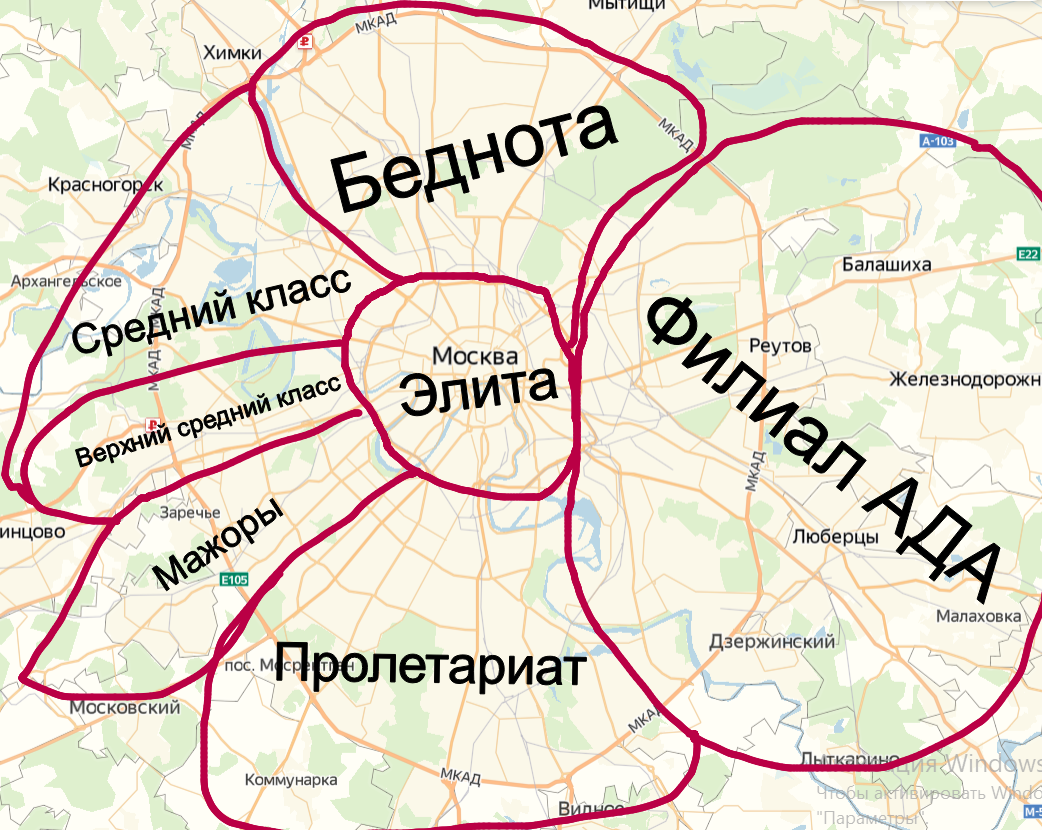 Moscow areas on the map