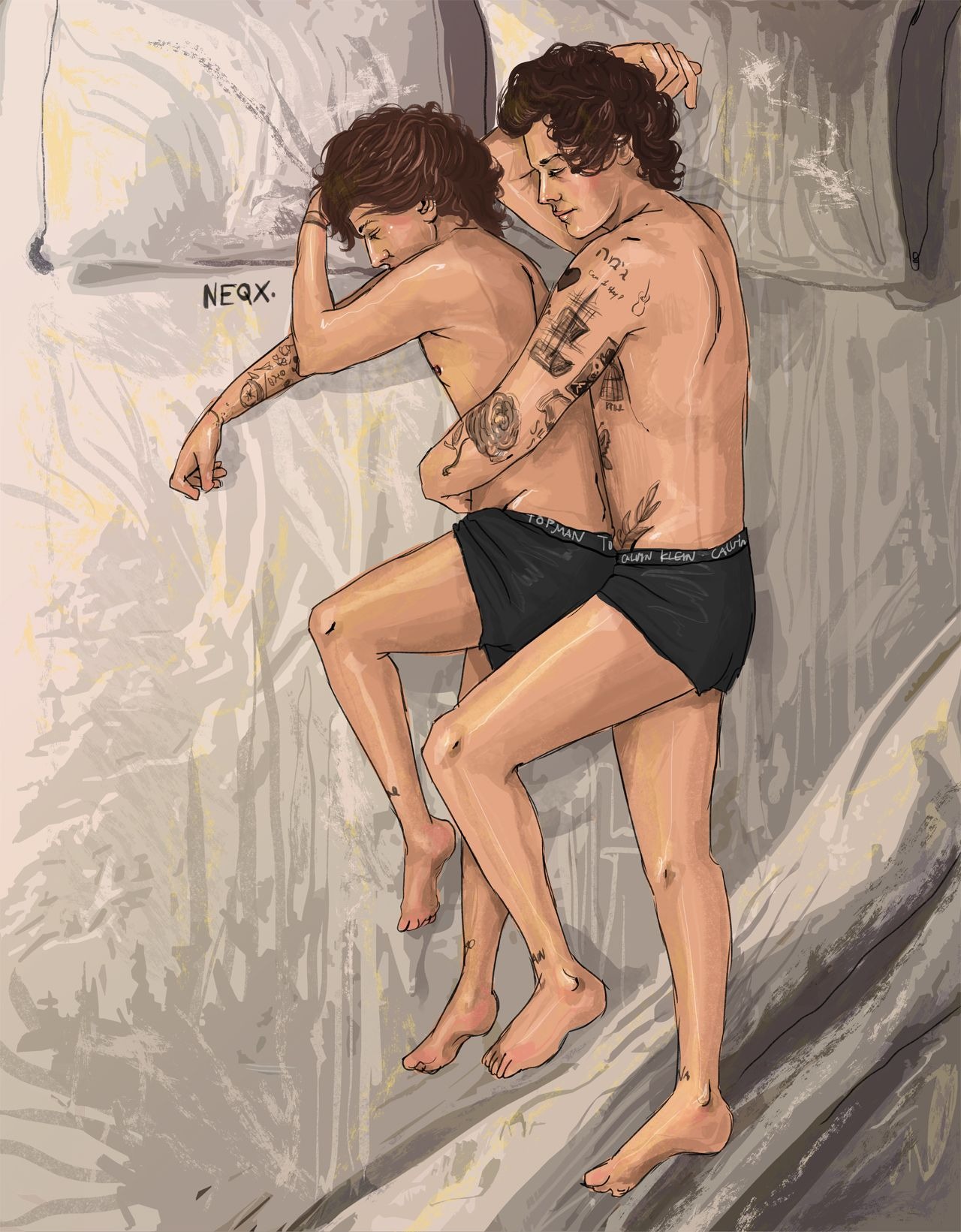 Harry Styles and Louis Tomlinson in bed
