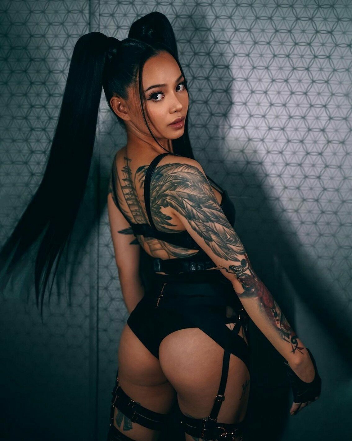Pornstar brunette tattoo on the back