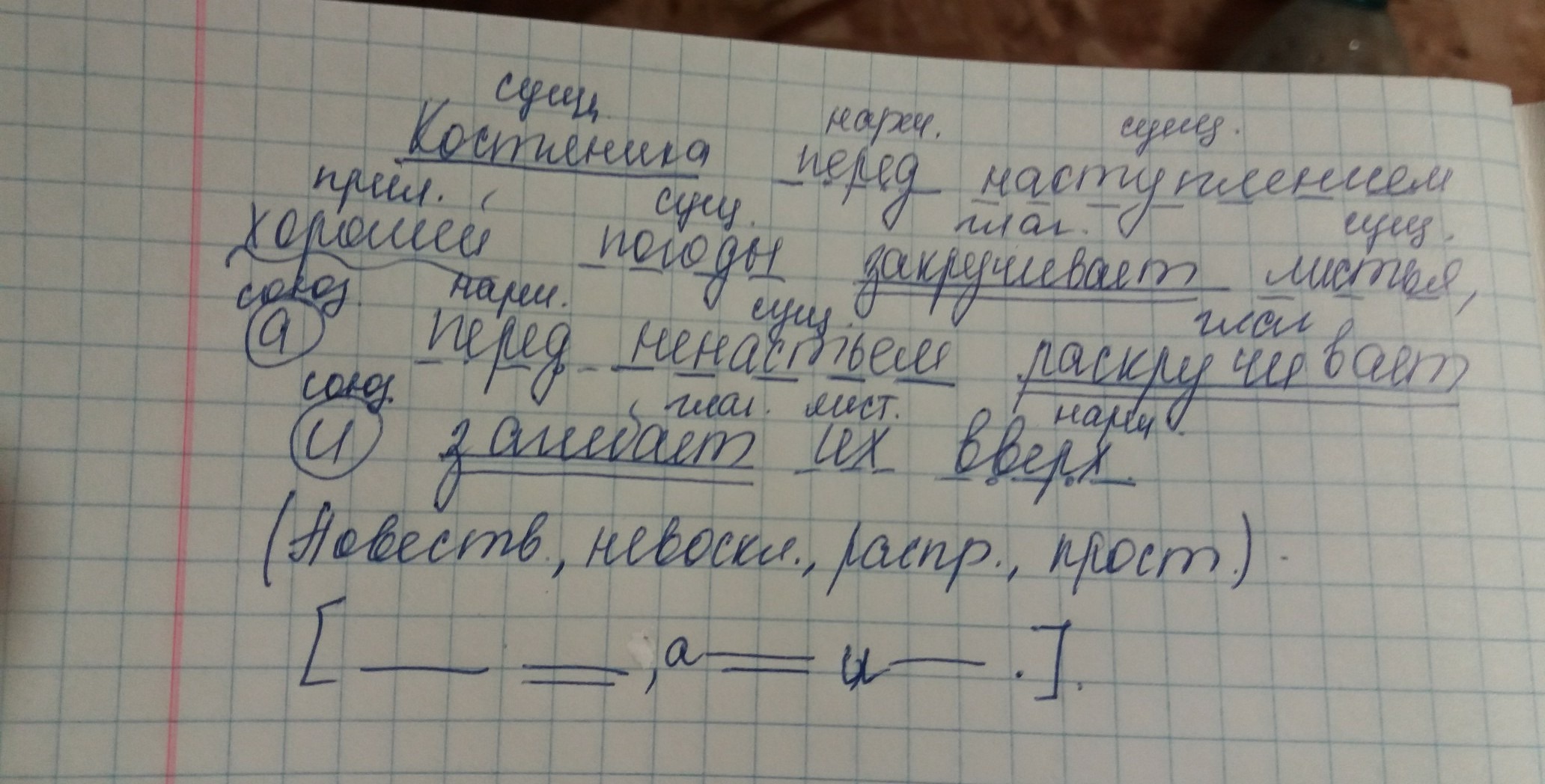 Syntactic analysis of the sentence