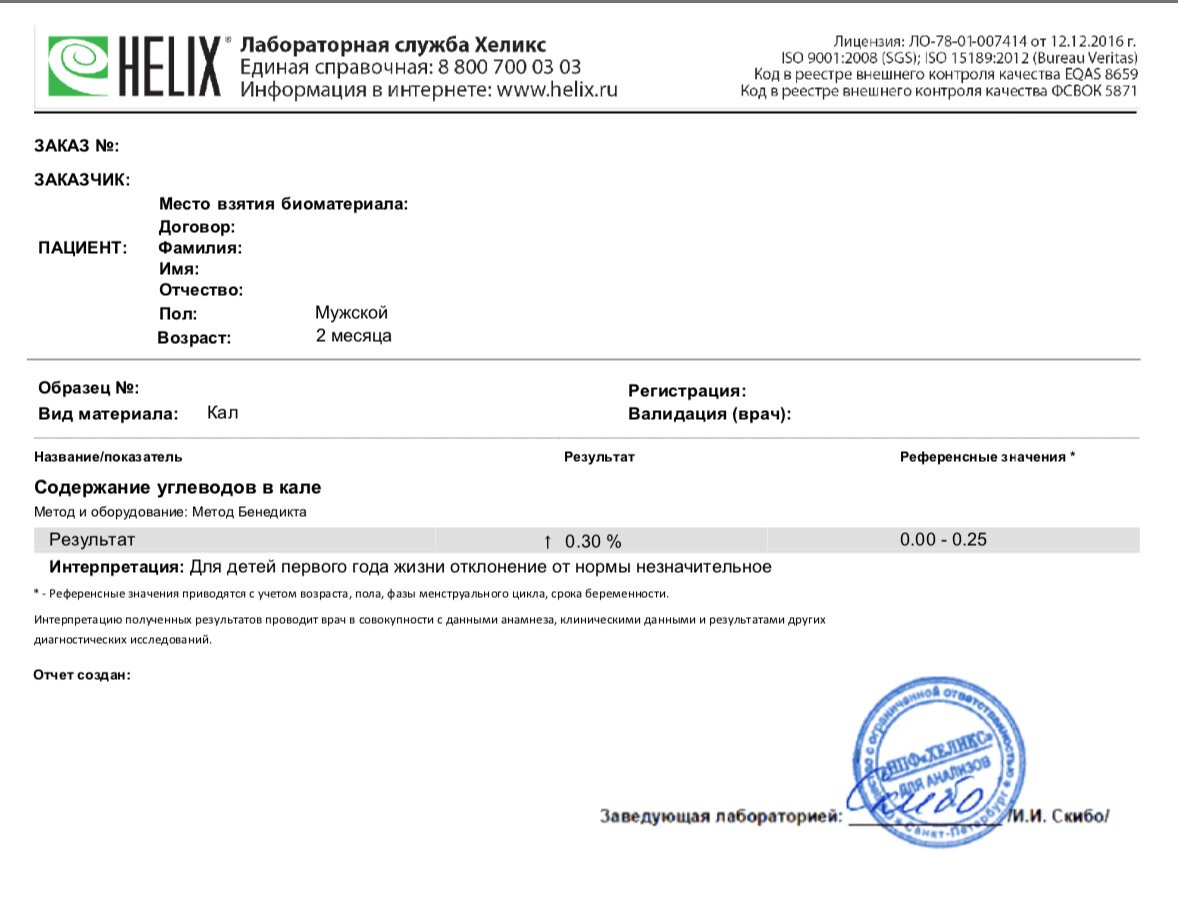 The results of analyzes for oncomarkers