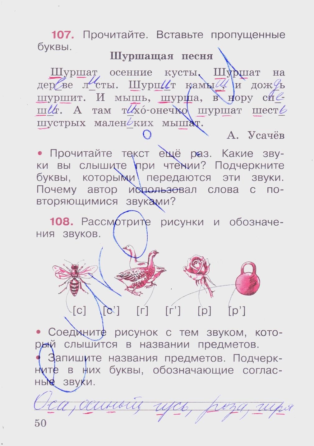 Workbook on Russian Language Grade 2 Kanakina page 50