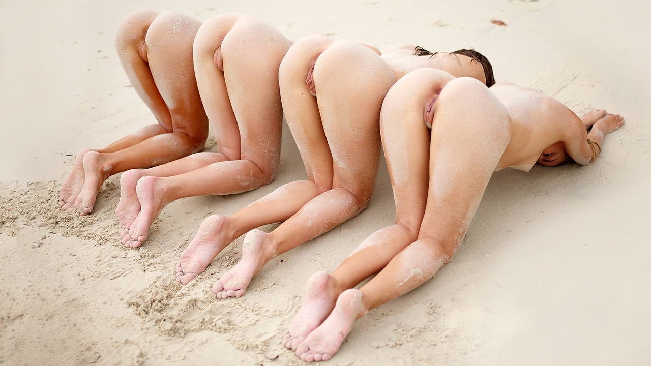 Naked Ariel, Marika, Melena and Maria Mira on the beach