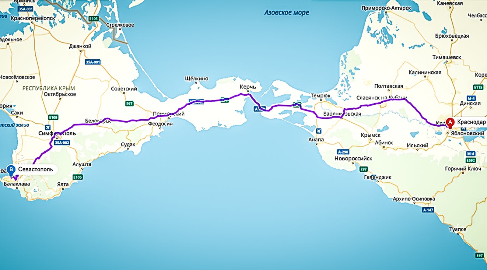 Kerch and Yalta on the map