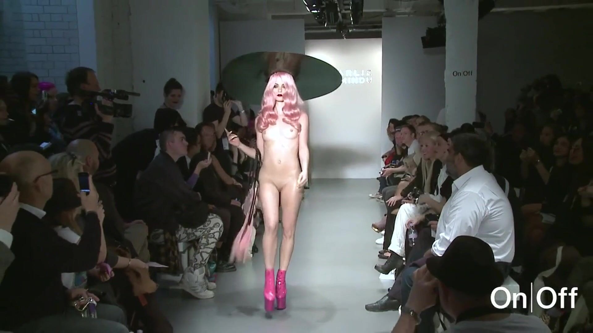 Naked Japanese models on the catwalk